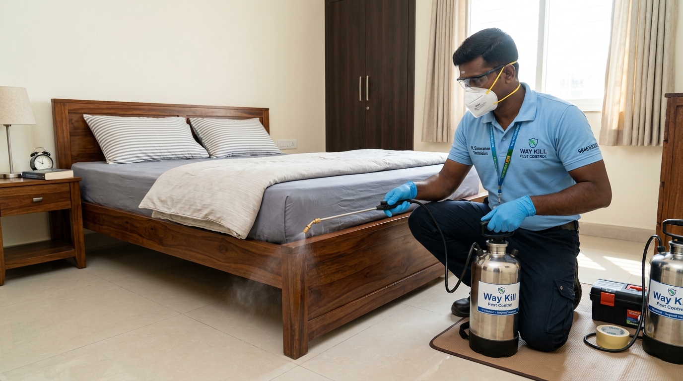 Bed bugs hide in mattresses, furniture, and tiny cracks, making them difficult to eliminate without professional help. At Waykill, we conduct a thorough inspection to identify all infested areas and apply targeted treatments such as heat or specialized chemicals to eradicate them completely.